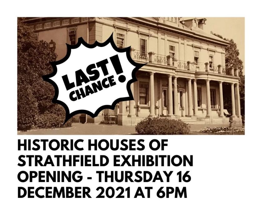 OFFICIAL OPENING EVENT will be held on Thursday 16 December 2021 6pm. Refreshments served. Free entry. Booking at https://www.eventbrite.com.au/e/opening-historic-houses-of-strathfield-exhibition-tickets-206912008387?aff=ebdssbdestsearch