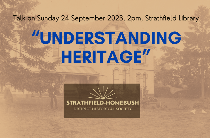 A talk ‘Understanding Heritage’ will be held at 2pm Sunday 24 September by Strathfield’s Council’s Heritage Advisor.
