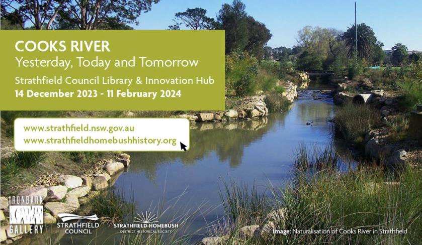 The Cooks River: Yesterday, Today and Tomorrow is a new exhibition prepared by Strathfield Council and the Strathfield-Homebush District Historical Society. The exhibition will be open from 14 December 2023 to 11 February 2024 at the Ironbark Gallery, Strathfield Library, 65-67 Rochester Street Homebush.