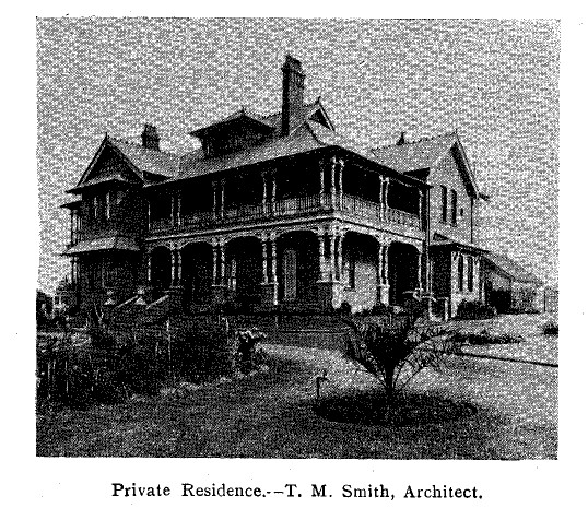 According to his 1907 biography: “Since starting to practice Mr. Smith prepared and supervised numerous works both in Sydney and suburbs, besides a number in several important provincial towns. And among others a very large private residence on the Boulevard, Strathfield, for Francis Crago, Esq. : business premises, situated in George Street, Sydney, erected for the trustees in the estate of the late Joseph Wyatt, of North Sydney, and which are at present occupied by Messrs. Harrington & Co. Ltd., photographic merchants. Mr. Smith has resided in Marrickville for a period of twenty-eight years. He is architect to the Marrickville Cottage Hospital, and is also an Associate of the New South Wales Institute of Architects. Mr. Smith is a prominent member of the New South Wales Gun Club, and during the past four years has supervised many works in connection therewith”.
