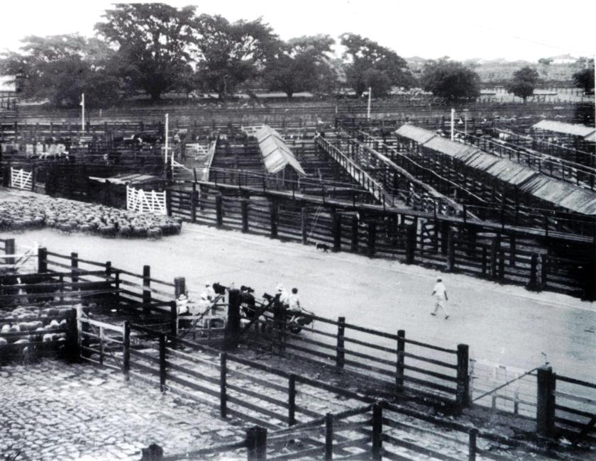In 1870, cattle and sheep yards were erected near Homebush Railway Station and were progressively expanded (Fox 1986: 43). In 1882, the saleyards and resting paddocks then known as Flemington Saleyards became the central saleyards for Sydney (Jones, 1985: 147). They were opened in 1882 by John Harris, then Mayor of Sydney, amid much protest from Strathfield Council. In 1884, Flemington Station opened with a footbridge connected to the saleyards (Fox 1986: 43).