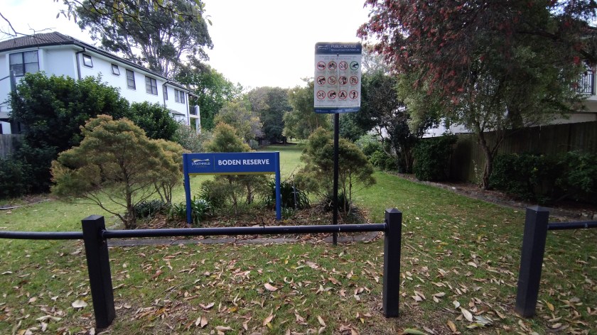 Boden Reserve was acquired as open space by Strathfield Council as the land was divided by a deep drain and considered unsuitable for building.