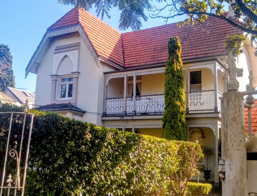 ‘Gwendoline’ 13 Albyn Road Strathfield is two storey Victorian styled house with Gothic influences.