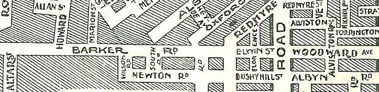 Now known as Albyn Rd. Bushy Hill Rd was located between Homebush Rd and Chalmers Rd and it was said to describe the natural environment of this area. This section of Albyn Rd is located on the Bushy Hill Estate, which was subdivided in 1880.