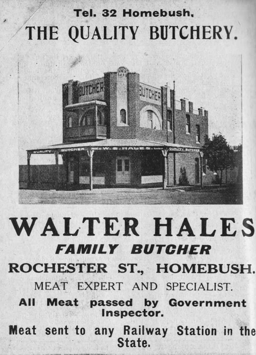 The first occupant of the shop was butcher Walter Sydney Hales. An advertisement for ‘Walter Hales, family butcher and meat expert and specialist’ features in Wilson’s Authentic Directory of Sydney and Suburbs in 1913, an early street directory of Sydney. In 1916, the butcher’s licence was transferred to the Silverton Meat Company. This shop was later occupied by the Neirbo Butchering Company. The shop was still used a butcher shop until at least 1965.