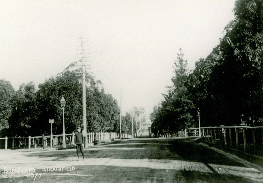 Whether the name is purely coincidental, Strathfield Council adopted a program called ‘boulevarding’ in the late 19th century consisting of developing streetscape design consisting of nature strips, street plantings, sealed roads, kerbs and gutters etc. The Boulevarde was the first street to receive street planting in 1886 and The Boulevarde uniquely contains double planted street trees.